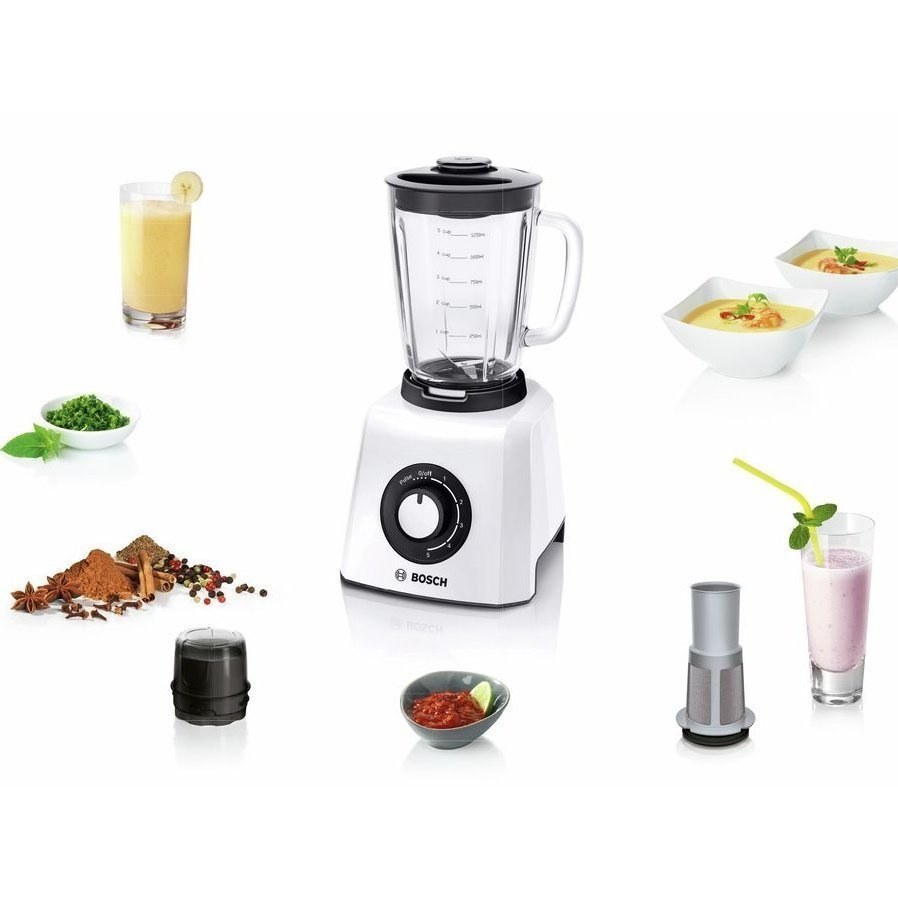 مخلوط کن بوش MMB33G5BGB مجهز به قطعه اسموتی ساز میباشد که با قرار دادن میوه و مایعات درون قطعه آن، میتوان انواع اسموتی های بی دانه را تهیه نمود. توسط قطعه آسیاب یا خرد کن دستگاه نیز میتوان انواع مغز های خوراکی و … را آسیاب کرده و انواع گیاهان را خرد نمود.