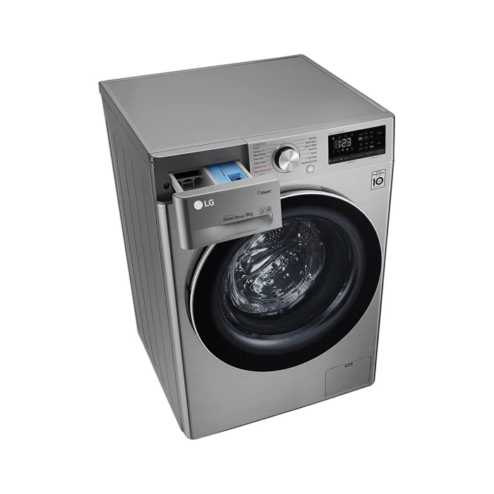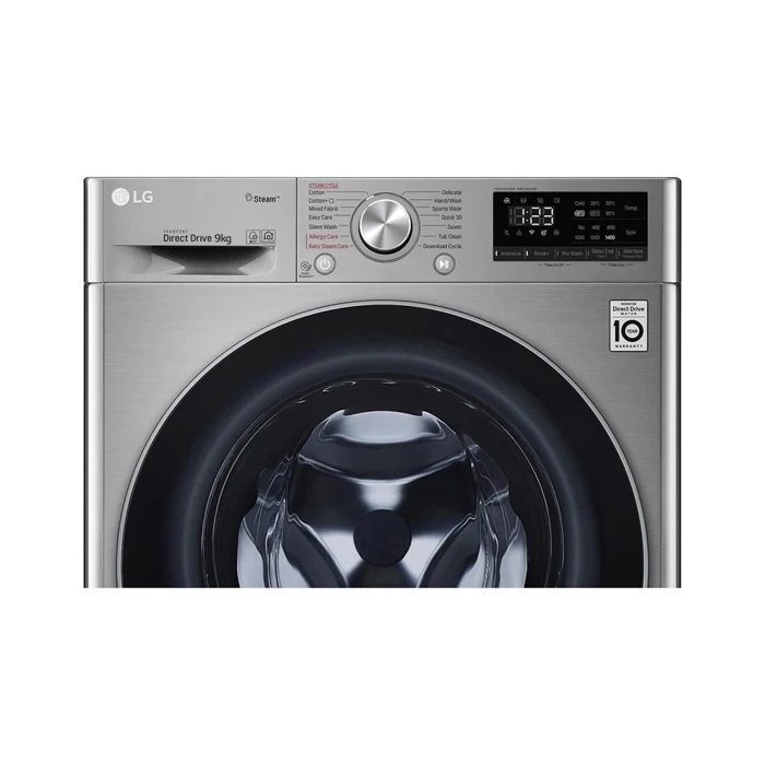 صفحه نمایش LED در قسمت بالایی لباسشویی جدا از جلوه زیبایی که به محصول می دهد اطلاعاتی همچون مدت زمان باقی مانده تا پایان فرایند شستشو و یا برنامه در حال اجرا و… را نیز به کاربران اطلاع میدهد. ولوم چرخشی در قسمت وسط و جنب پنل نمایش حضور دارد که تعداد برنامههای شستشو به دور آن قرار دارند. با استفاده از این دکمه رادیویی کاربران بسته به نوع و جنس لباسهای خود برنامه مدنظر را انتخاب می کنند. لباسشویی 4R5 ال جی دارای 14 برنامه شستشوی متنوع است که جزو لباسشوییهای فول برنامه به حساب میآید و امکان شستشوی هر نوع لباس با هر جنس و رنگی را میدهد.