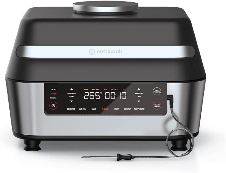 سرخ کن و گریل نوتریکوک مدل AFG960 دستگاه باکیفیت، قدرتمند و هوشمند 1760 واتی است که با 6 برنامه طبخ، پخت 5 نوع مواد غذایی پروتئینی، دماسنج هوشمند، 5 سطح درجه حرارت و ظرف پخت 8.5 لیتری، سرخ کردن و کباب کردن غذاها در فضای باز را شبیه سازی کرده و این امکان را فراهم کرده به راحتی و سریع از غذاهای کبابی سالم و خوشمزه لذت ببرید.