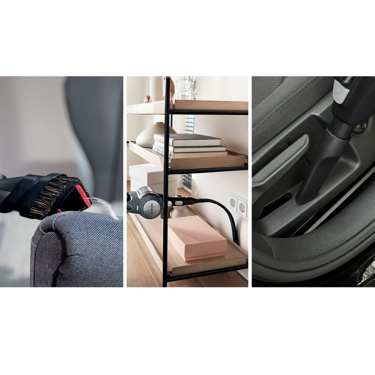 فضای داخلی خودرو به طور کلی مکانی دشوار برای تمیز کردن است و اغلب هیچ سوکت و پریز برقی در نزدیکی آن وجود ندارد. به همین دلیل است که جاروشارژی بوش مدل BCS711GB شامل لوازم جانبی کاملی است که برای دسترسی آسان به هر نقطه نازلی مناسب دارد.